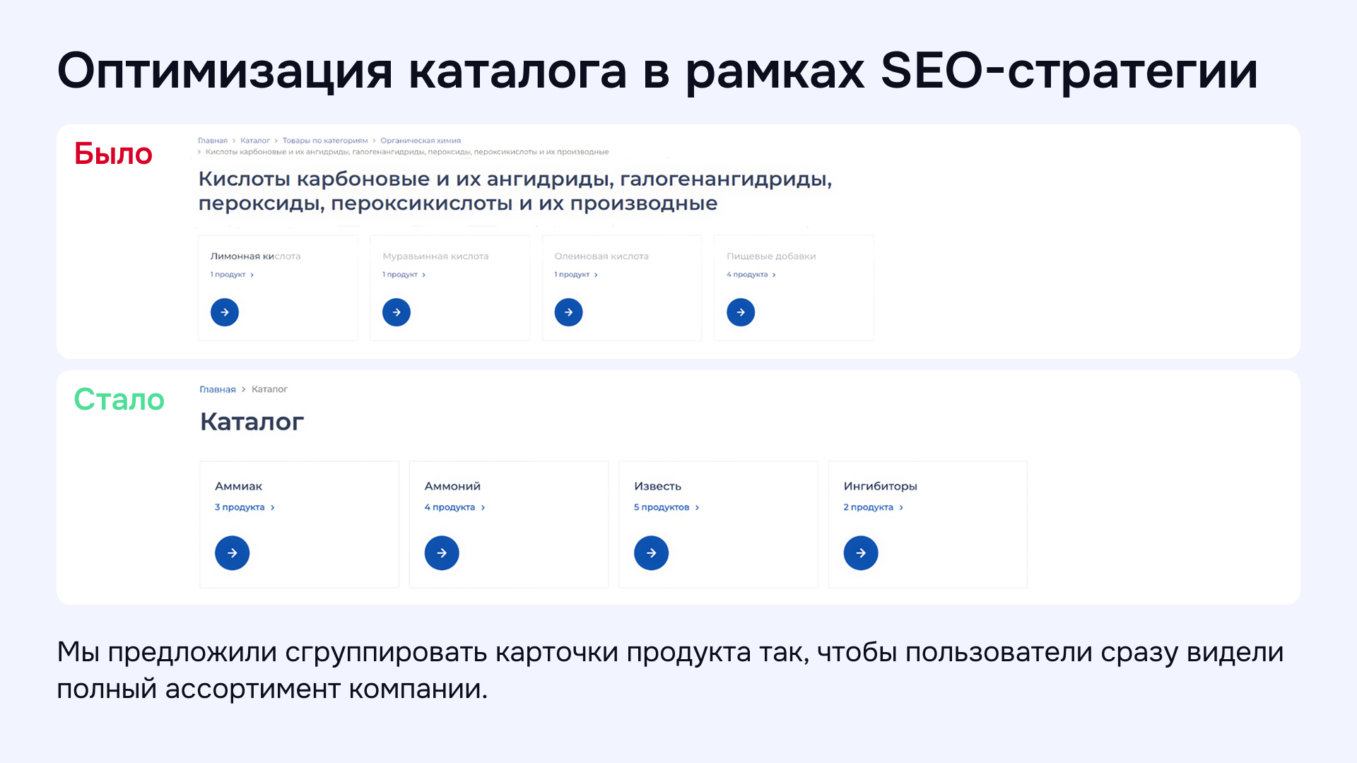 Пример доработки каталога товаров промышленной химии