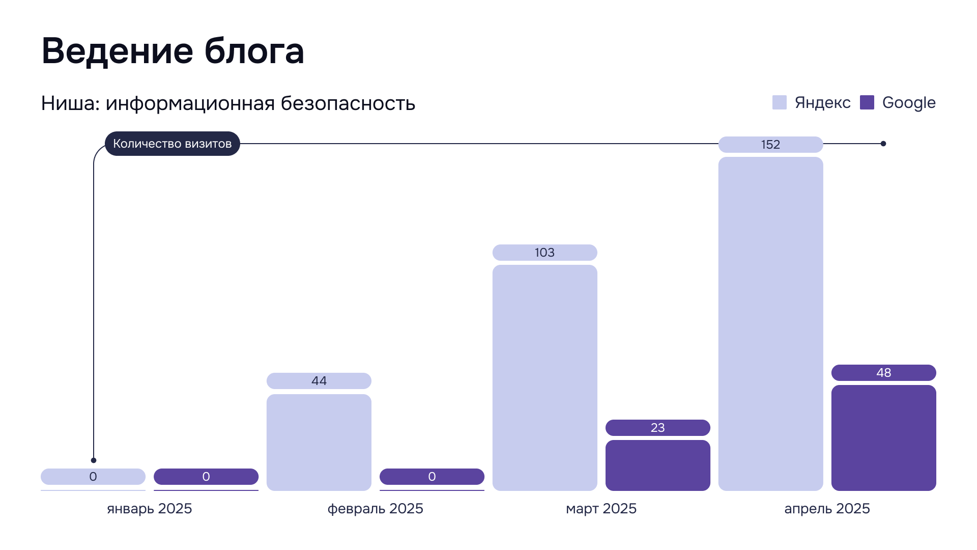 Мы собираем данные ежемесячно, но именно к четвертому-пятому месяцу их накапливается достаточно для точного анализа: какие темы и подходы действительно работают, где теряется трафик, что стоит усилить.