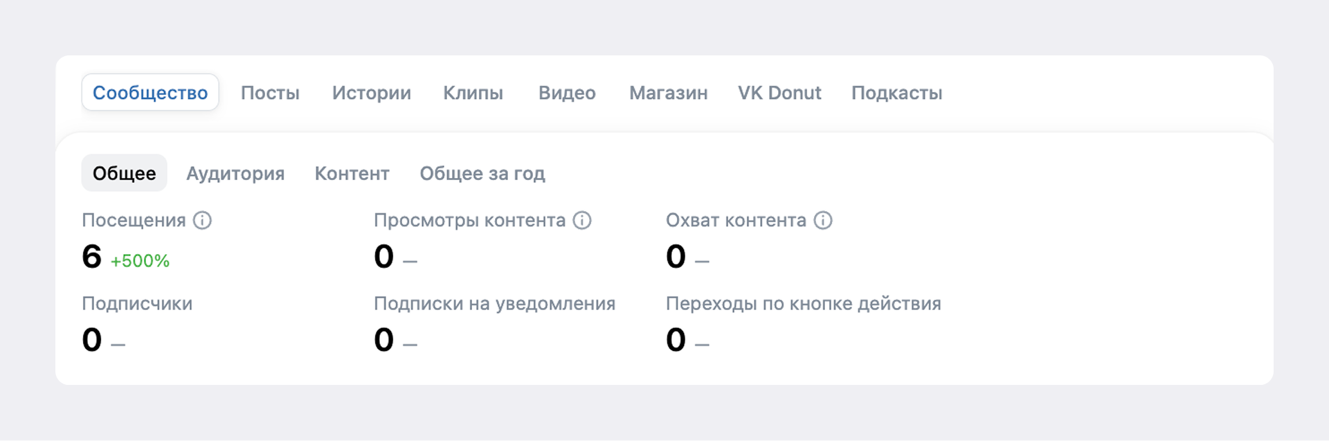 Для анализа продвижения через VK хватит встроенной статистики, которая открывается в меню сообщества / страницы — она достаточно обширная.