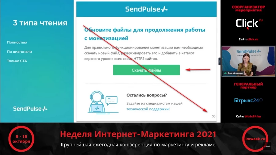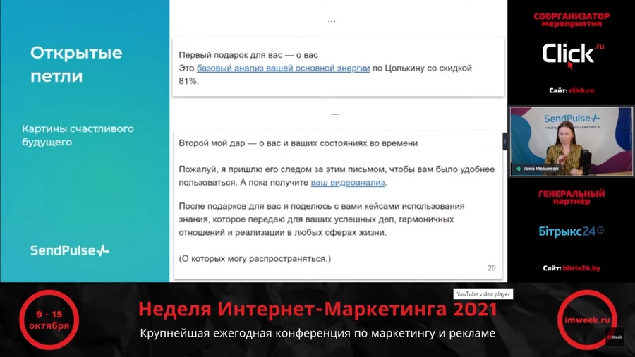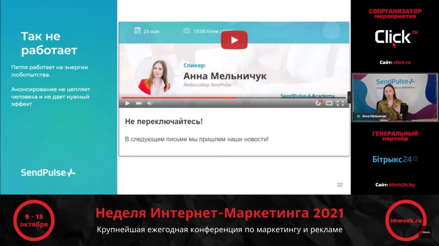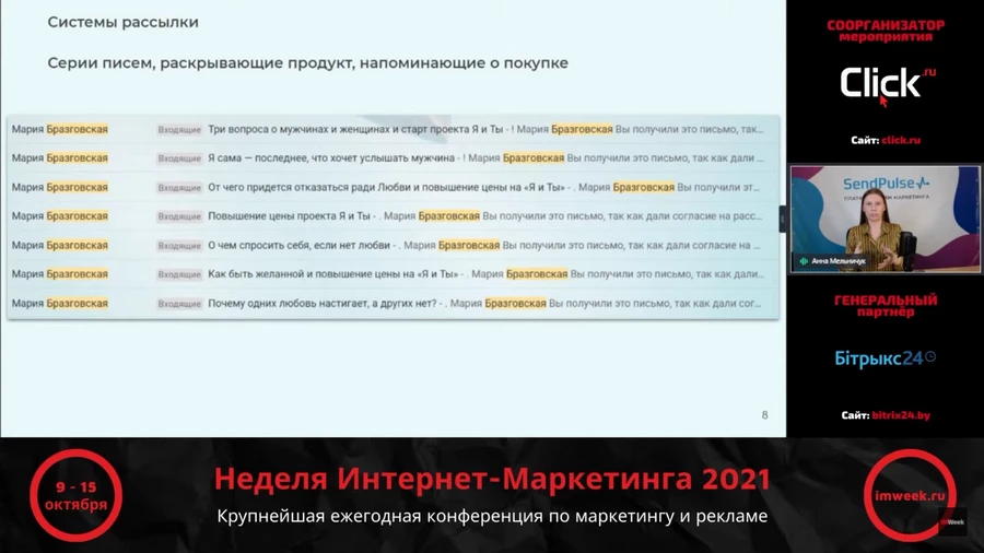 Докладчица: Анна Мельничук, амбассадор Sendpulse — сервиса по работе с email-рассылками