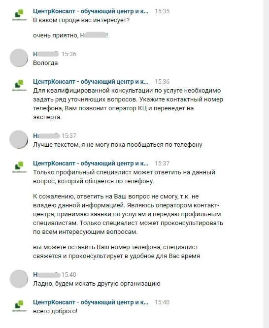Часто социальные сети компаний ведет удаленный сотрудник либо агентство, и эти люди не располагают информацией о внутренних процессах, поэтому отправляют клиентов «на телефон». Если отдаете SMM на аутсорс, дайте агентству контакт своего внутреннего менеджера, который проконсультирует в трудных случаях. Либо назначьте ответственного за обработку сообщений внутри компании и обяжите проверять аккаунты раз в три часа, например.