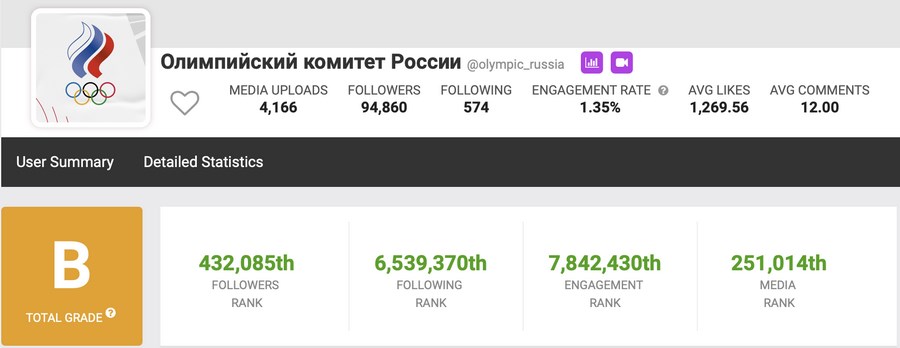 Мы посмотрели, насколько сильно олимпийские комитеты разных стран заботятся о вовлечении людей. Каждый из аккаунтов проверили с помощью сервиса Social Blade.
