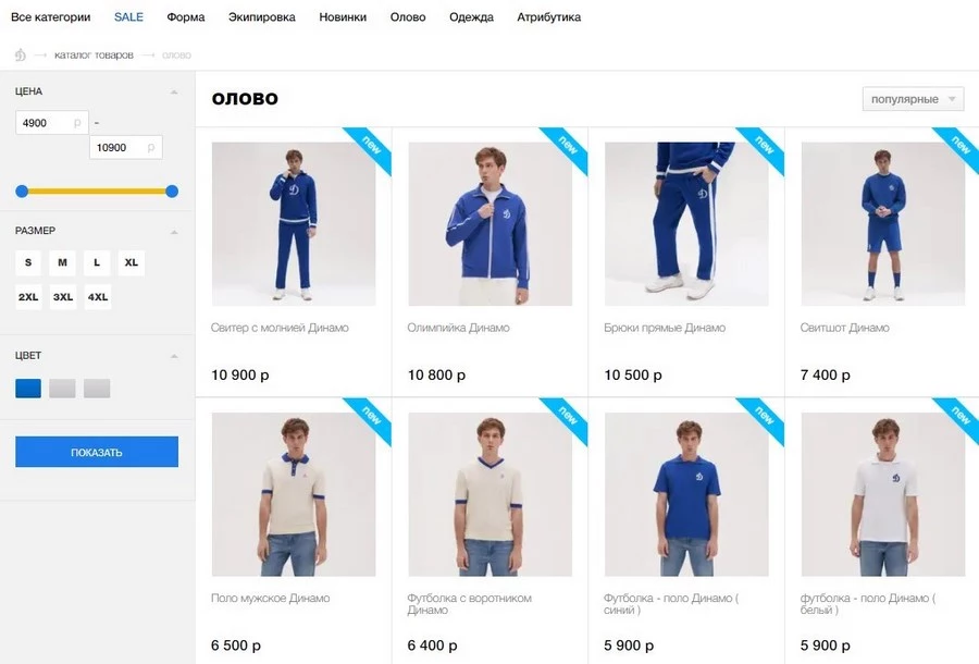 Советский спортивный костюм, поло в стиле ретро, свитер на половинчатой молнии до груди, шапка с помпонами. Нет, это не Олимпиада-80 и не содержимое бабушкиного шкафа. Это коллаборация бренда «Олово» и московского футбольного клуба «Динамо». Все вещи выполнены в фирменных цветах ФК с узнаваемой литерой «Д». Коллекция из 10 предметов поступила в продажу в августе. На сайте интернет-магазина «Динамо» стоимость колеблется от 4 900 до 10 900 ₽.