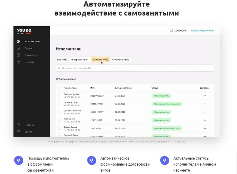Онлайн-сервис поиска исполнителей для любых задач YouDo и интернет-рекрутер HeadHunter в июле запустили платформу «YouDo Бизнес». Она должна помочь юрлицам в работе с самозанятыми: найти исполнителей на аутсорсе, автоматизировать документооборот.