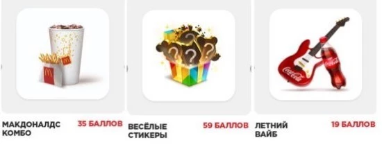 Пользователи могли обменять накопленные баллы на промокод в McDonald's и стикеры «ВКонтакте».