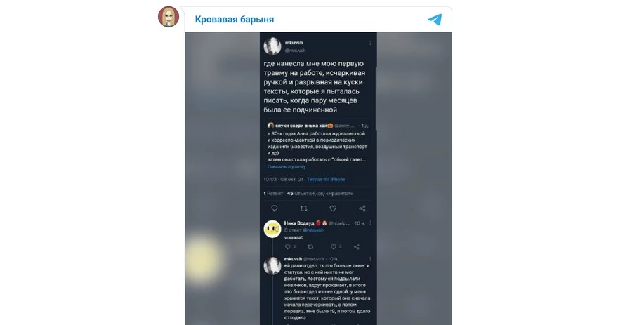 «По поводу фейков, связанных со мной. Я о порядочности в свой адрес даже просить не буду: знаю, что бесполезно», – пишет женщина в своем Telegram.